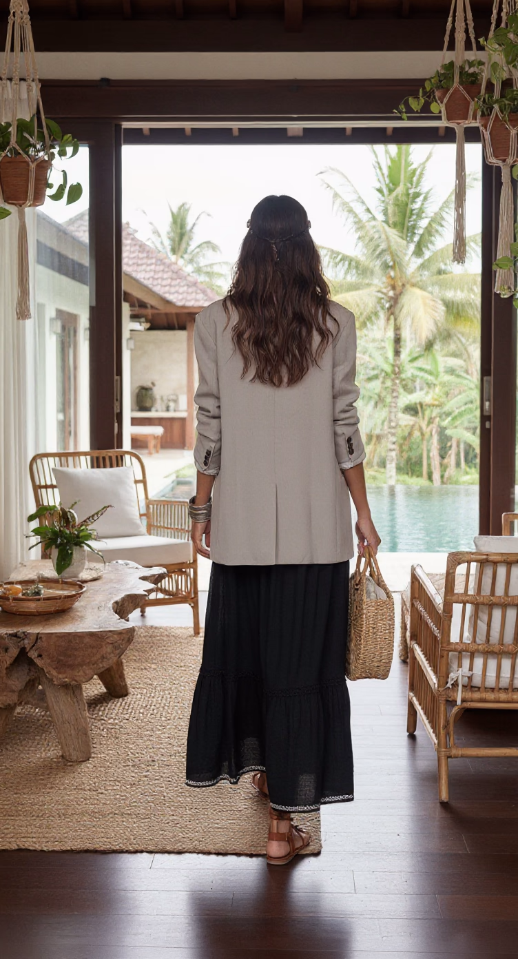 La Blazer Gio redefine el estilo oversize. Su mezcla con rayón y spandex ofrece un confort superior y un ajuste perfecto. Elegancia y versatilidad en una sola prenda.