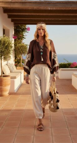Descubre el Blusón Paola, 100% algodón con mangas abullonadas y delicados bordados. Un diseño romántico, fresco y muy favorecedor para un estilo único.