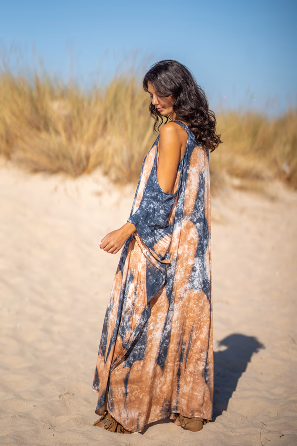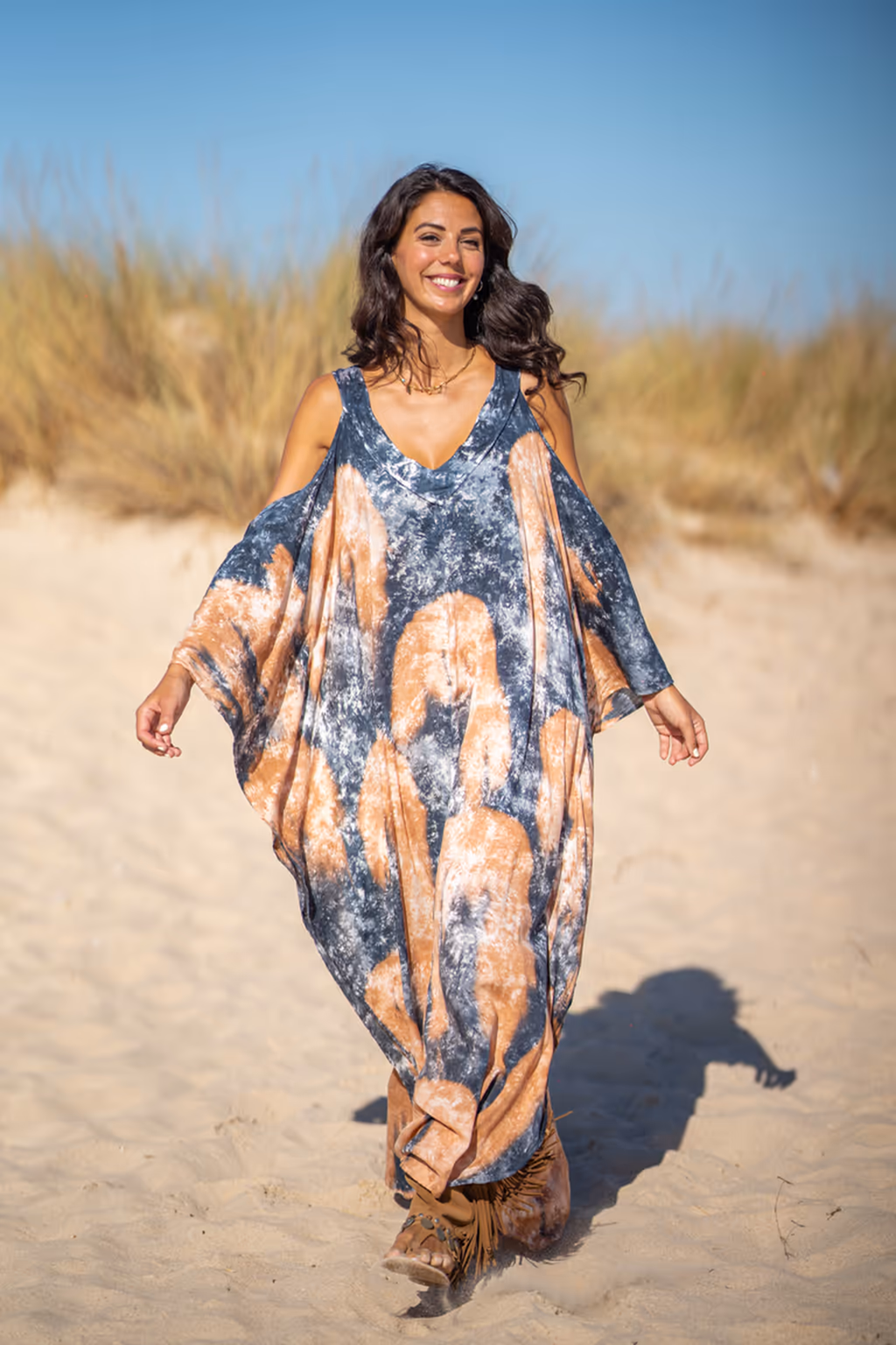 Comodidad superior con el mejor maxi kaftan fluido. Holgado, elegante y teñido a mano con tintes naturales. Disfruta de una pieza 100% espectacular.