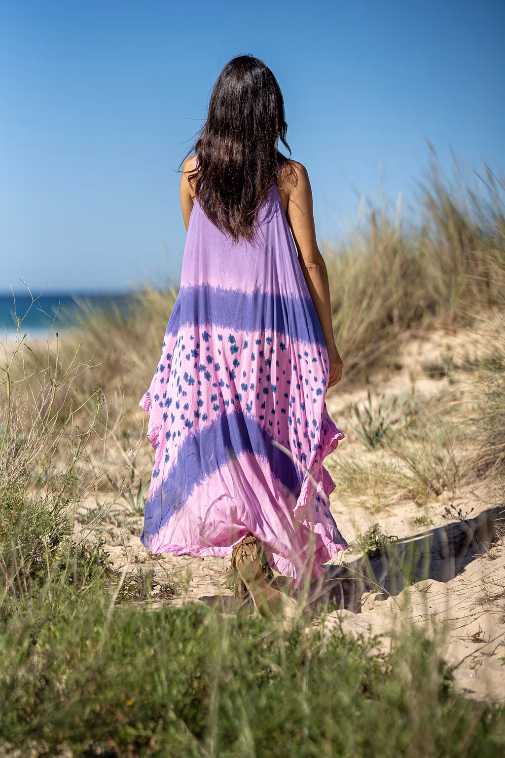 Sabemos que la comodidad es clave en los días de calor. Por eso, los tirantes de este maxi vestido batik son totalmente ajustables, permitiendo que la prenda se adapte a tu figura con total facilidad. Está confeccionado en rayón de primera calidad, una fibra natural famosa por su suavidad sedosa y su alta transpirabilidad.