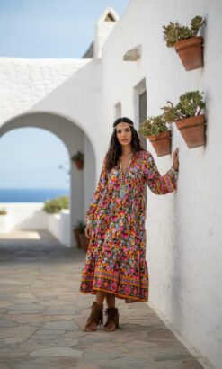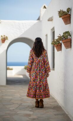 Siente el movimiento con el Vestido Tao. Una prenda artesanal con volantes, diseño fluido y un estilo boho irresistible.